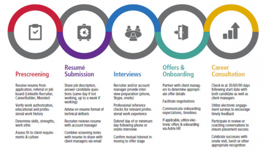 Applying with Engage is the first step of your recruiting process. You'll potentially go through the following steps leading to your hire with us: